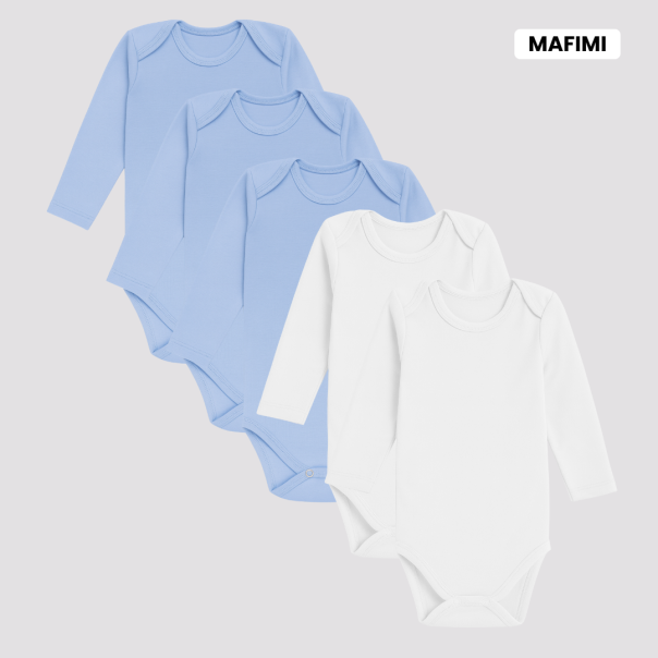 Mafimi Pamučni Bodići Dugi rukav set od 5 - 3 plava, 2 bela