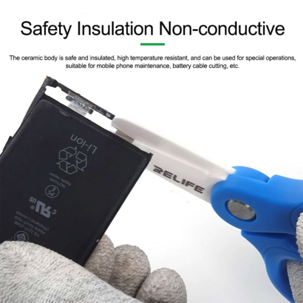 Relife RL-102A Mini keramičke makaze za održavanje mobilnih telefona Pogodne su za održavanje mobilnih telefona, sečenje baterijskih kablova, kućnu, kancelarijsku, sečenje žica itd., i mogu se nositi sa sobom Keramičko kućište je bezbedno i izolovano, otporno na visoke temperature, i može se koristiti za specijalne operacije Visoka gustina, visoka tvrdoća, gotovo nema habanja, ne rđa pri izlaganju vodi, tvrdoća oko HRA90, druga samo iza dijamanta Najveće otvaranje je 5cm, lako se seku različite žice, strune za pecanje i druge predmete Udobno držanje, lako se drži i nije klizavo Pametan dizajn prilagođen obliku ruke, udoban je i ne zamara držanje tokom dugog vremena Sadržaj paketa: 1x Relife RL-102A makaze