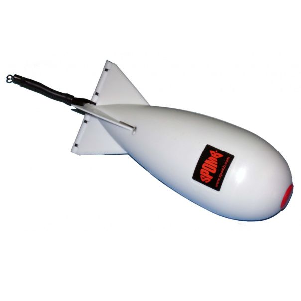 Spomb raketa Klasična crna Spomb raketa je prvi put predstavljena u februaru 2010. Nekoliko meseci kasnije, zbog potražnje iz zemalja sa izuzetno toplim i sunčanim vremenom, beli Spomb je proizveden. On je iste veličine, dizajna i kvaliteta kao naš prvi proizvod, ali ne osećate toplo na dodir po vrućini. Prednosti korišćenja Spomb raketa su: Strašno rastojanje Aerodinamika Spomb – a je u obliku suze. Ovo je svakako najbolji proizvod za let kroz vazduh sa minimalnim otporom. Najbrže hranjenje Kada Spomb dotakne vodu momentalno se skroz otvara, mamci se oslobadjaju i raketa se ispira vodom. Brzo akvaplan izvlačenje Spomb pluta jednom otvoren i klizi bez napora po površini vode bez uvrtanja ili uvijanja najlona, čak i kod jačih vetrova. Ostale rakete imaju previše otpora prilikom preuzimanja. Bez gubitka mamaca Kada se Spomb raketa napuni, ostaje zatvoren i ništa od mamaca neće ispasti dok ne udari u vodu i ne otvori se. Rakete sa otvorenim krajem ili sa rupama omogućavaju da mamci ispadaju. Bilo koji mamac Sve što se može staviti u Spomb može biti zabačeno, uključujući: Pelete, boile, konoplju, kukuruz, mikseve, hleb, meso, crve, gliste, zrnevlje itd. Nema potrebe da se mešaju Svi mamci mogu samo da se stave u Spomb bez potrebe da se mešaju. Ako želite da se zabace kugle hrane, to može biti tačno zabačeno na željenoj udaljenosti, čak veoma daleko. Dobra otpornost na vetar Vetar ima veoma mali uticaj na let zbog aerodinamike. Čak i sa jakim unakrsnim vetrom, njegova tačnost i udaljenost zabačaja je izuzetna. Za sve Spomb rakete se preporučuje da se čuvaju u zatvorenoj-vezanoj poziciji . Za ekstremne vremenske uslove, jak vetar i kiša u lice, možete da okrenete prednje dugme za 180 °. Spomb raketa je jednostavno najbolji izbor. Ova velicina poseduje integrisan plovak koji mu omogucava da nakon oslobadanja tereta, ostaje da pluta iznad vode, što olakšava njegovo uocavanje ukoliko dode do kidanja linije.