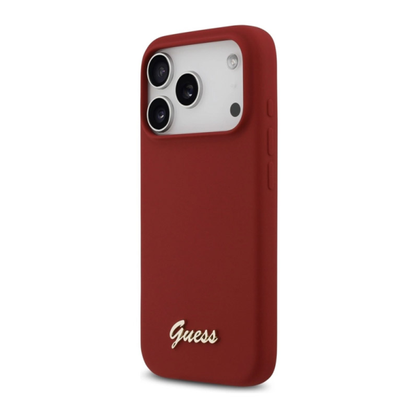 Maska za iPhone 17 Pro Guess Silicone Script Metal Logo MagSafe Phone Case Cover crvena
