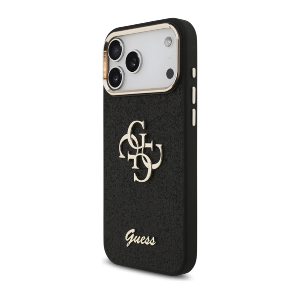 Maska za iPhone 17 Pro Max Guess Fixed Glitter Big 4G Metal Frame Case crna