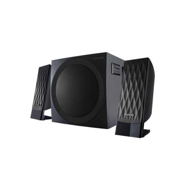 Microlab zvučnici M-300BT black Sistem 2.1 Snaga 38 W RMS 14 W, 2 x 12 W Frekfencija 40 Hz - 20 kHz Bluetooth Priključci - USB - SD čitač kartica - 3,5 mm stereo FM tjuner Prednji panel za kontrolu jačine zvuka