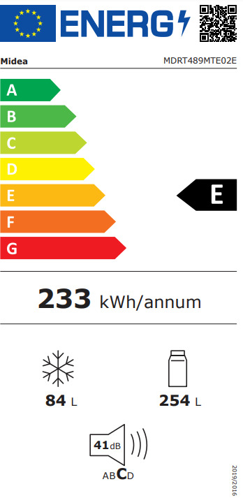 Ovaj model dolazi sa energetskom klasom E, što ga čini ekonomičnim izborom za vašu kuću. Sa godišnjom potrošnjom energije od 233 kWh, MIDEA frižider je dizajniran da smanji troškove električne energije, a istovremeno pruži optimalne performanse.