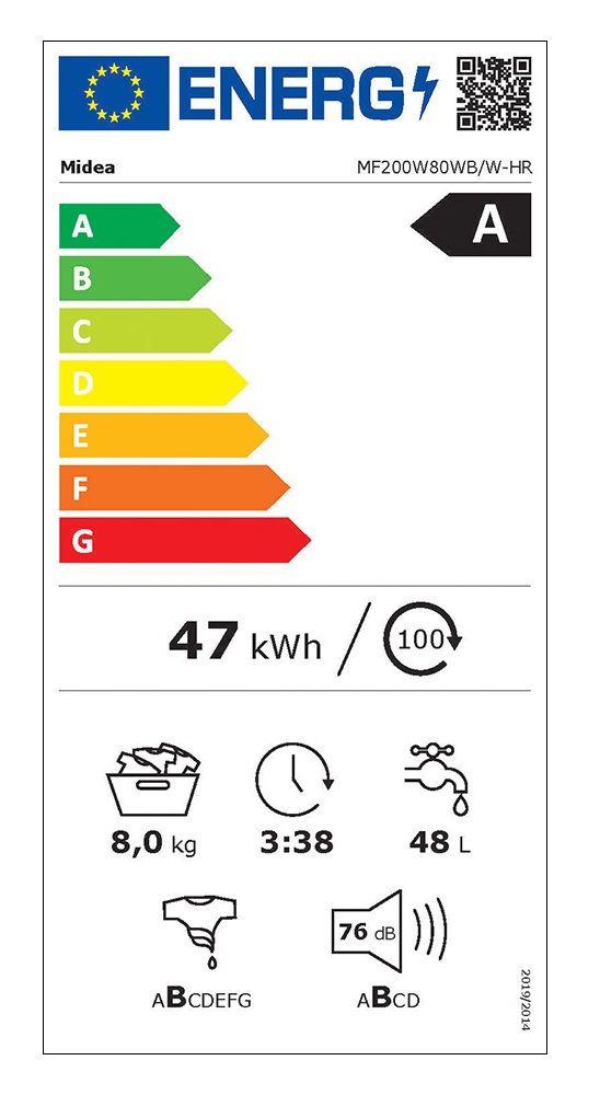 Sa potrošnjom vode od 48 litara po ciklusu u eko programu 40-60, MIDEA Mašina za pranje veša MF200W80WB/W-HR je ekološki prihvatljiv izbor koji pomaže u očuvanju resursa.