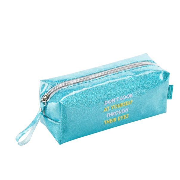 Ova elegantna pernica u upečatljivoj tirkiznoj nijansi sa suptilnim sjajnim efektom privlači pažnju na prvi pogled. Inspirativna poruka “Don’t look at yourself through their eyes” daje joj dodatnu vrednost, podsećajući na samopouzdanje i autentičnost. Minimalistički oblik i čiste linije čine je idealnim izborom za školu, posao ili svakodnevnu organizaciju.