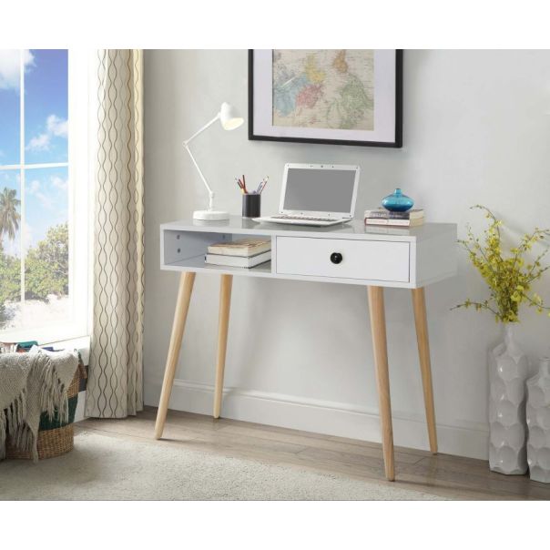 Moderan radni sto sa fiokom predstavlja savršen spoj funkcionalnosti i estetike, prilagođen različitim potrebama korisnika. Ovaj multifunkcionalni sto dizajniran je da zadovolji zahteve kako za radnim stolom, tako i za stolom za sminkanje. Radna površina stola izrađena je od visokokvalitetne laminirane iverice koja pruža glatku i izdržljivu površinu. Laminat čini sto otpornim na ogrebotine i lako održivim, čime se obezbeđuje dug vek trajanja. Nogare stola izrađene su od prirodnog borovog drveta, čime se postiže topla i prirodna estetika. Drvene nogare dodaju prirodan dodir celokupnom dizajnu stola, istovremeno pružajući stabilnost i trajnost.Fioka stola ima dovoljno prostora za odlaganje svakodnevnih radnih materijala ili šminke, čime se omogućava organizacija prostora i održavanje radnog okruženja urednim. Fioka se lako otvara i zatvara i poseduje mehanizam za usporavanje prilikom zatvaranja, a njen dizajn je prilagođen da se uklopi u moderan koncept stola.Ovaj multifunkcionalni sto je idealan izbor za one koji traže praktično i estetski privlačno rešenje za svoj radni prostor ili kutak za šminkanje. Svojim elegantnim dizajnom i pažljivo odabranim materijalima, ovaj sto će privući pažnju ljubitelja modernog enterijera. Investirajte u kvalitetan radni sto koji se lako prilagođava različitim potrebama, čime ćete unaprediti svoj radni prostor i istovremeno uživati u sofisticiranom dizajnu. Dimenzije radne površine: 80cm x 40cm .Visina stola: 77cm. Radna površina stola: Laminirana iverica Nogari: Borovo drvo