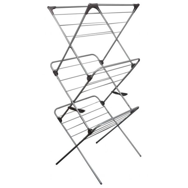 Vertikalni sušač za veš - ModernHome Vertikalni sušač za veš nudi 15 metara prostora za sušenje, što ga čini idealnim za uštedu prostora. Njegov vertikalni dizajn zauzima malo prostora i opremljen je sa tri nivoa. Izrađen je od plastike i čelika premazanog prahom, što ga čini izuzetno laganim i stabilnim. Noge sušača su zaštićene neklizajućim stopama, a sušač ima i brave koje sprečavaju spontano sklapanje. Njegov sklopivi dizajn omogućava lako skladištenje u ormanu ili malom skladištu, zauzimajući dimenzije 7x60x77 cm kada je sklopljen. PAKOVANJE Proizvod je upakovan u posebno ojačanu transportnu kutiju, svi elementi sušača su pravilno osigurani kako bi se sprečila oštećenja tokom transporta. Dimenzije pakovanja su 81x64x7 cm, Težina: 3.5 kg. Kod proizvoda: JM-3-18G