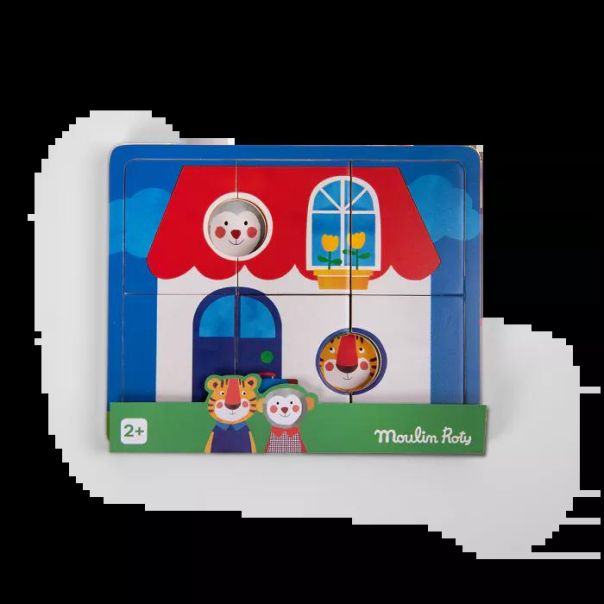 MOULIN ROTY Drvena slagalica - Les Popipop je savršena igračka za najmlađe istraživače. Ova senzorna slagalica sastavljena je od 6 delova raspoređenih na 3 nivoa, pružajući deci priliku da otkriju svet oblika i boja na zabavan i edukativan način.