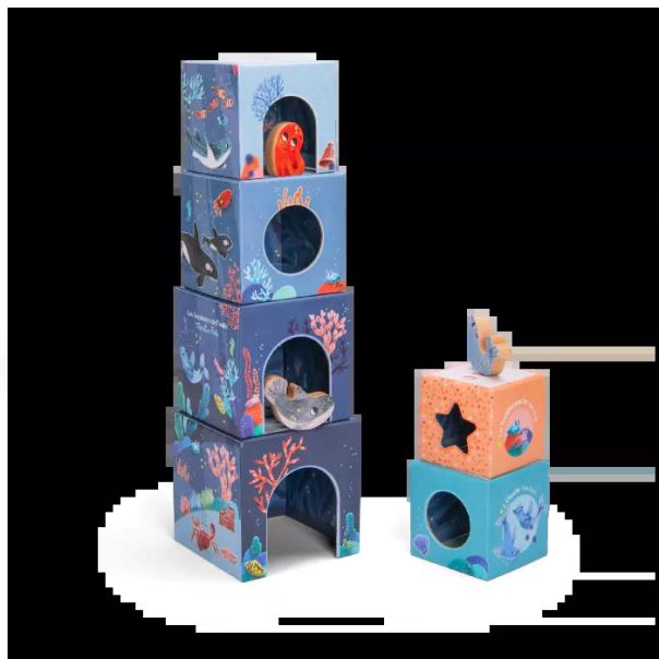 Svaka kocka je oslikana motivima morskih životinja, što omogućava deci da kroz igru otkrivaju i uče o različitim vrstama koje žive ispod okeana.