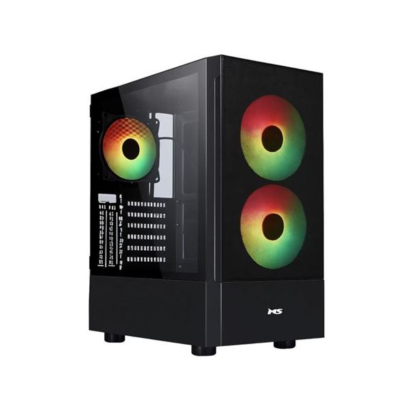 Ovo Midi Tower PC Case kućište pruža moderni izgled sa staklenom bočnom stranom i ugrađenim ARGB ventilatorima, idealno za kompaktne gaming ili radne konfiguracije.