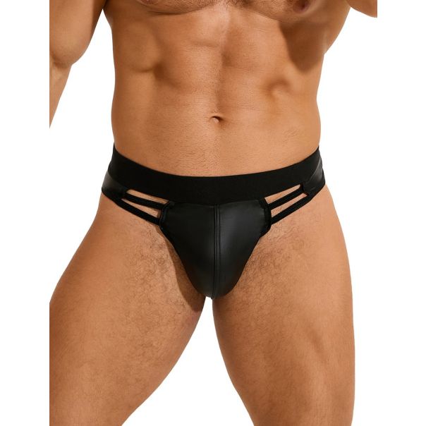 Unesite odvažnost u svoj izbor donjeg veša uz ovaj muški model od PU kože, sa efektnim izrezima koji ističu telo i unose dozu provokacije.