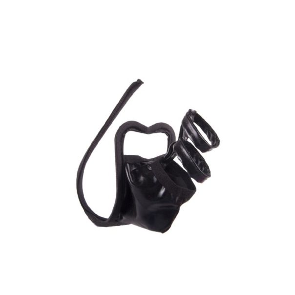 Prednji deo je oblikovan tako da diskretno i sigurno pokriva intimnu zonu, dok fleksibilni okvir omogućava da C-string stoji na mestu bez potrebe za bočnim trakama. Crna boja i sjajni finiš daju dodatnu dozu erotike i modernog izgleda.