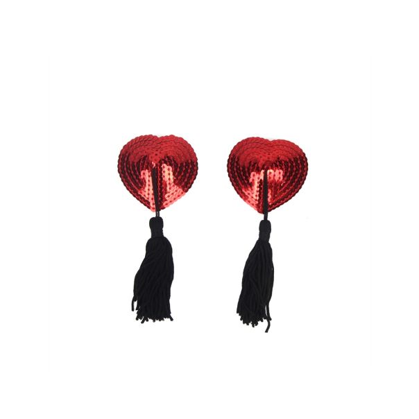 Dodajte zavodljiv i moderan detalj svojoj garderobi uz ove crvene nalepnice za bradavice u obliku srca, ukrašene šljokicama i dekorativnim resama koje pružaju efektnu i seksi notu. Idealne su za posebne prilike, nastupe, fotoshooting ili noćne izlaske.