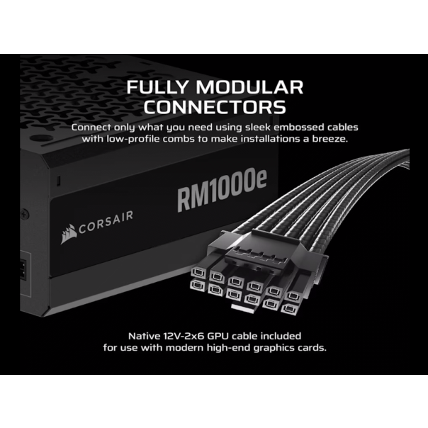 | Naziv, vrsta robe i model | NAPAJANJE CORSAIR RM1000e 1000W/ATX 3.1/PCIe 5.1/80+GOLD/modularno/CRNA |