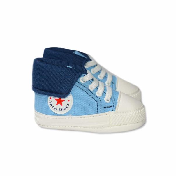 Nehodajuće poluduboke patike od kombinovane tkanine sa pertlama napred i ukrasnim štepovima. Od 5 do 8 meseci.