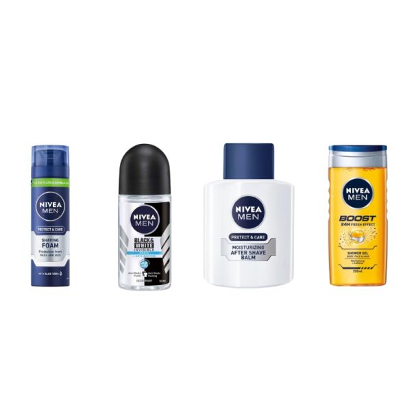 NIVEA Paket se sastoji od pene za brijanje 200ml, roll on-a 50ml i gela za tuširanje 250ml + poklona balzam za posle brijanja 100ml.