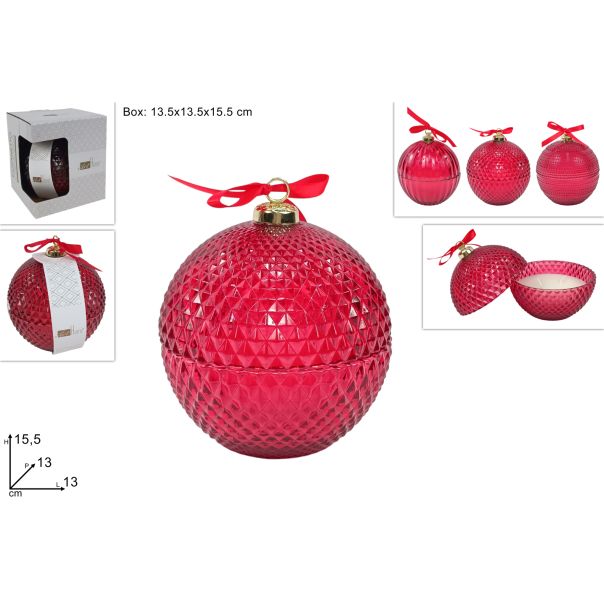 Novogodišnja staklena kugla 13cm, crvena, sa mirisnom svećom