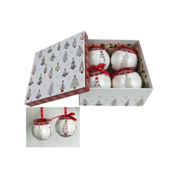 Novogodišnje kugle 7.5cm u ukrasnoj kutiji set 4/1, bela-crvena