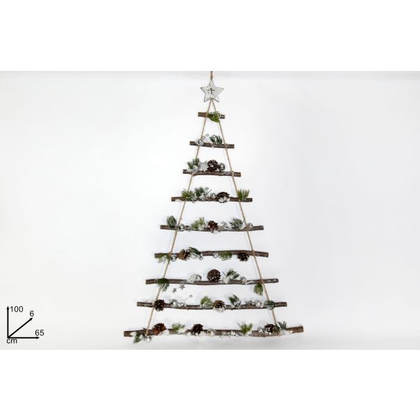 Novogodišnji ukras božićna jelka sa drvenim zvončićima i srebrnim šišarka