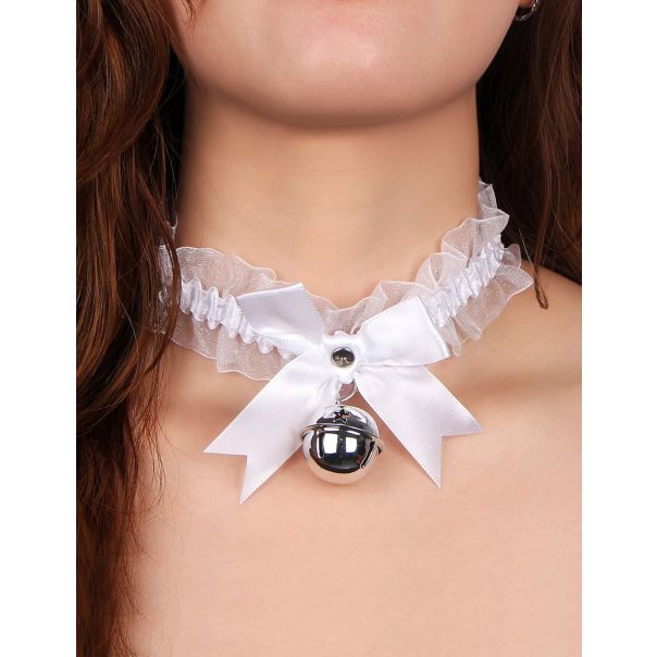 Dodajte dašak zavodljivosti i elegancije uz ovu crnu čipkastu ogrlicu sa dekorativnom mašnom i metalnim zvončićem. Napravljena od lagane čipke i satenskih traka, nežno se prilagođava vratu i pruža udoban osećaj tokom nošenja. Mašna u centru daje romantičan izgled, dok zvončić dodaje šarmantan i razigran detalj.