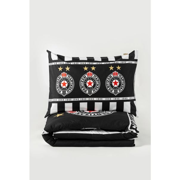 Na posteljini su istaknuta tri grba FK Partizan, simboli snage, lojalnosti i uspeha, kao i godina osnivanja kluba – 1945, što ovaj set čini pravim navijačkim suvenirom i idealnim dodatkom svakoj navijačkoj sobi.