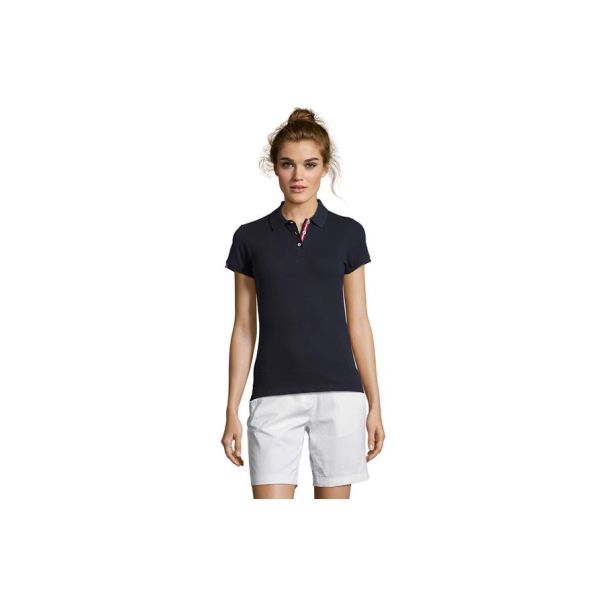 SOL'S PATRIOT WOMEN je ženska polo majica kratkih rukava koja se ističe modernim detaljima i kvalitetnom izradom. Izrađena od PIQUE materijala od 200 g/m², 100% pamuka, pruža udobnost i postojanost, dok kroj koji blago prati liniju tela naglašava ženstveni izgled. Posebnu notu daju kontrastni detalji u boji na rukavima, kragni i delu sa dugmadima, kao i trake sa strane pri dnu. Idealna je za timove, uniforme i promotivne aktivnosti.