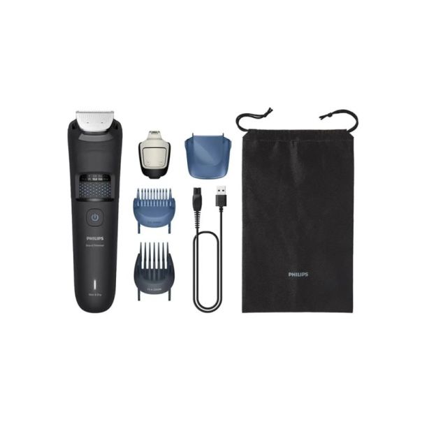 PHILIPS Trimer dolazi sa bogatom opremom koja uključuje četkicu za čišćenje, USB-A kabl, torbicu za skladištenje, češalj za kratku bradu (0.4 - 10 mm), češalj za dužu bradu (10.4 - 20 cm) i sakupljač dlačica. Sve ovo dolazi u elegantnoj crnoj boji, čineći ga savršenim dodatkom vašem setu za negu.