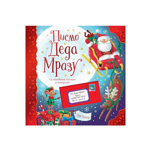 Prevela: Irina MarkićSa posebnim pismom i kovertom. Ho-ho-ho!, kikotao se Deda Mraz. Gde li se krije to pisamce? Spremite se za toplu novogodišnju priču o malenom mišu koji je iznenada postao Deda Mrazov pomoćnik. Uz nesebičnu Miškovu pomoć Deda Mraz je odabrao prave poklone za decu. Napiši i ti pismo Deda Mrazu i pronađi kovertu u ovoj predivnoj slikovnici.Godina_Izdanja:2023.|Format:23x23 cm|Povez:Tvrd|Pismo:Ćirilica|Izdavac:Laguna|Autor:Ned Tejlor|Zanr:Knjige za decu, Slikovnice|Broj_Strana:20