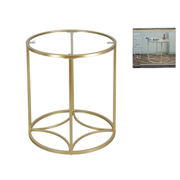 | Naziv, vrsta robe i model | Pomoćni stakleni stočić Renier, 40x40x46cm, zlatni ram |