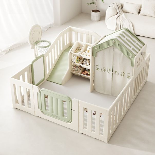 Ogradica za bebe 'Inovativni 7 u 1' predstavlja vrhunski multifunkcionalni sistem namenjen stvaranju sigurnog, stimulativnog i estetski prilagođenog prostora za najmlađe. Ovaj inovativni set kombinuje sedam ključnih funkcija u jednom, pružajući roditeljima savršeno rešenje za sigurnu igru, razvojne aktivnosti i odmor deteta, uz jednostavnost sklapanja i održavanja. Ključne komponente i funkcije sistema uključuju: Playhouse (igraonica) – centralno mesto za igru, odmor i socijalizaciju, podstičući kreativnost i imaginaciju. Storage rack (skladišni ormarić) – ergonomski dizajniran za lako organizovanje i pristup igračkama, priboru i drugim predmetima, čime se održava uredan prostor. Drawing board (tabla za crtanje) – podržava razvoj umetničkih veština, motoričkih sposobnosti i izražavanja, idealno za kreativnu igru. Basketball hoop (košarkaški obruč) – podstiče sportsku aktivnost, koordinaciju i preciznost, uz bezbednosne standarde. Swing (ljuljaška) – pruža osećaj slobode, radosti i emocionalnog mira, sa nosivošću do 25 kg. Slide (tobogan) – pogodan za energične igre, razvijajući motoričke i balansne sposobnosti sa nosivošću do 40 kg. Climbing frame (penjalni okvir) – ohrabruje razvoj motoričkih veština, snage i koordinacije deteta. Podloga nije deo seta. Materijal konstrukcije je visokokvalitetni HDPE, korišćen u prehrambenoj industriji, što garantuje sigurnost, dugotrajnost, otpornost na vremenske uslove i higijensku sigurnost. Bezbednosni standardi su u prvom planu, a sistem je lako za sklapanje, demontažu i prilagođavanje prostoru u bilo kojoj unutrašnjoj ili spoljašnjoj sredini. Dimenzije proizvoda su 200 x 180 x 133 cm, što obezbeđuje širok prostor za višestruku igru i razvojne aktivnosti. Ogradica je dizajnirana u moderanom, neutralnom stilu, kompatibilna sa različitim enterijerima ili eksterijerima, te ne narušava estetiku. Ovaj sistem je idealan izbor za roditelje koji žele da obezbede sigurnu, funkcionalnu i edukativnu okolinu za svoje dete, podstičući zdrav razvoj, aktivnost i sigurnu okolinu za igru i odmor.
