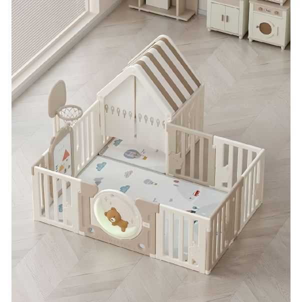 Dečija ogradica sa kućicom, košem, tablom i mesečevim svetlom – magičan kutak za igru i maštu! Pretvorite dečiju sobu u svet igre, učenja i zabave! Ova multifunkcionalna ogradica pruža bezbedan i maštovit prostor gde će mališani provoditi sate u kreativnoj igri. Sadržaj kompleta: Kućica sa vratima i prozorčićima – za igre skrivanja i zamišljene avanture Koš za košarku – za prve sportske pokušaje i razvoj motorike Tabla za crtanje – podstiče maštu i kreativnost Mesečeva svetlost – stvara prijatnu, toplu atmosferu tokom igre i odmora Dimenzije: 180 × 120 cm Visina: 64 cm Karakteristike: Izrađena od visokokvalitetnog HDPE materijala koji se koristi u prehrambenoj industriji – netoksičan, bez mirisa i potpuno bezbedan za decu. Stabilna konstrukcija sa čvrstim panelima i sigurnosnim bravicama. Lako se sklapa i prenosi – idealna za kuću, terasu ili dvorište. U nežnim bež tonovima koji se lako uklapaju u svaki enterijer. Podloga nije deo seta. Prednosti:✔ Podstiče samostalnu igru i razvoj kreativnosti✔ Siguran prostor za igru beba i male dece✔ Višenamenski – igra, odmor, učenje i sport u jednom Ova ogradica je savršen izbor za roditelje koji žele da obezbede svom detetu siguran, udoban i inspirativan prostor za igru kod kuće!
