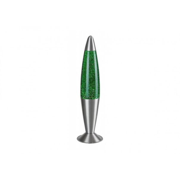 Rabalux Glitter 2 dekorativna lampa preporučuje se onima koji traže dugotrajno, fleksibilno i lako prenosivo ambijentalno svetlo. Stona lampa ima prepoznatljiv oblik koji podseća na raketu. Postolje i dekorativna baza su izrađeni od metala u srebrnoj boji, dok je abažur napravljen od providnog stakla. Lava lampa se upravlja kablovskim prekidačem i ima ugrađeni LED izvor svetlosti kako bi se osigurao dug vek trajanja lampe. Unutrašnjost elegantne dizajnerske lampe ispunjena je zelenom tečnošću, u kojoj plutaju srebrne šljokice, dajući lampi magičan, svetlucav izgled. Lava lampa će sigurno postati omiljena među svim članovima porodice, tako da neće biti lako odlučiti gde je postaviti. Savršen je izbor za dnevnu sobu, dečiju sobu ili spavaću sobu.