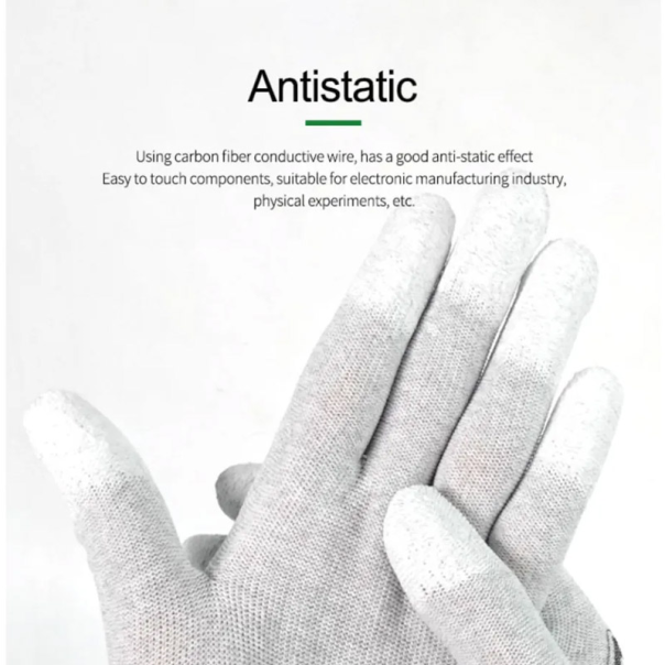 Materijal: Visokokvalitetna karbonska vlakna i Poliuretan Funkcija: Trajna antistatičnost Može se očistiti Može se koristiti kao rukavice osetljive na dodir Rukavice izrađene od materijala koji sprečava klizanje ili ispadanje predmeta iz ruku korisnika Pakovanje: 1 par Ovo je neophodan alat za posao lemljenja. Veoma je koristan za ljude koji se bave popravkom.