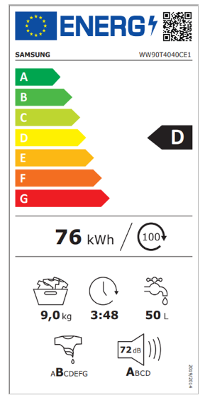 - Potrošnja energije (100 ciklusa) - 76 kVh