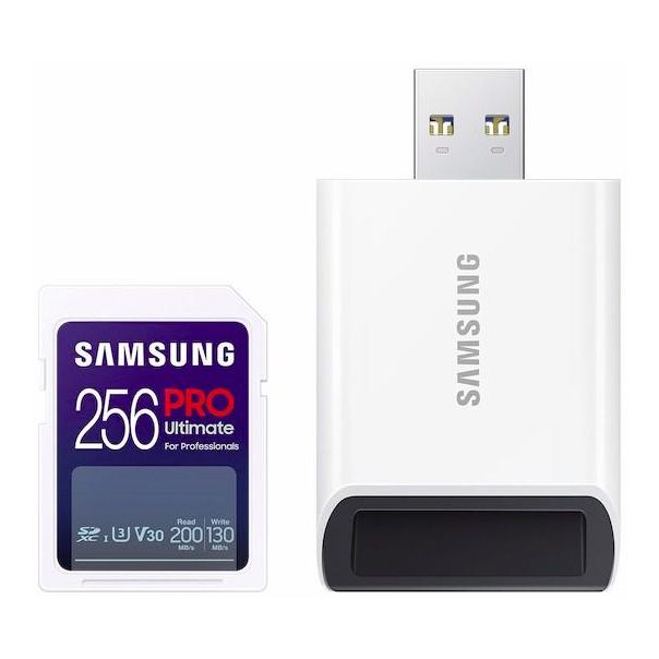 SAMSUNG SD Card 256GB, PRO Ultimate, SDXC, UHS-I U3 V30, Read up to 200MB/s