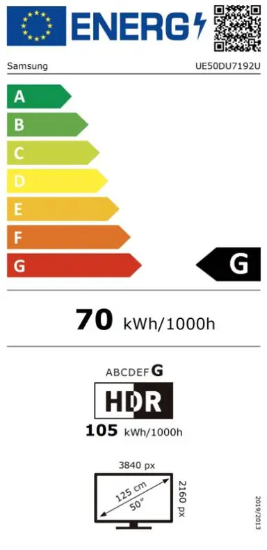 Televizor ima klasu energetske efikasnosti G, sa maksimalnom potrošnjom struje od 120 W i automatskim režimom štednje energije. Eko-senzor dodatno smanjuje potrošnju struje.