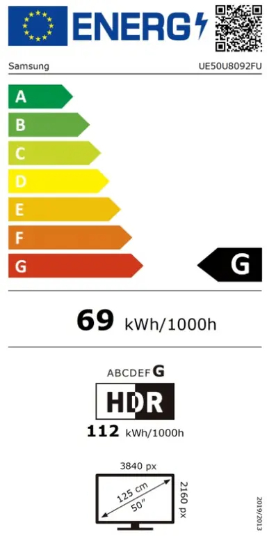 Televizor ima klasu energetske efikasnosti G, sa maksimalnom potrošnjom struje od 110W i uobičajenom potrošnjom od 52W. Eko-senzor i automatska štednja energije doprinose smanjenju potrošnje.