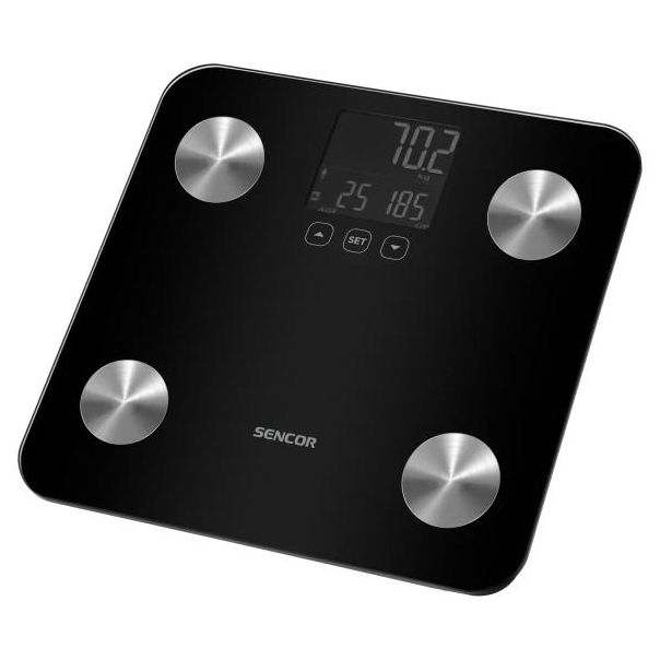 SENCOR telesna fitnes vaga SBS 6026BK je savršen izbor za sve koji žele detaljan pregled stanja svog tela. Sa kapacitetom težine do 180 kg i preciznošću vaganja od 100 g, ova vaga omogućava tačno merenje telesne mase. Pored osnovnog merenja težine, vaga analizira i telesne parametre kao što su telesna masnoća, procenat vode, mišićna masa, koštana masa i BMI.