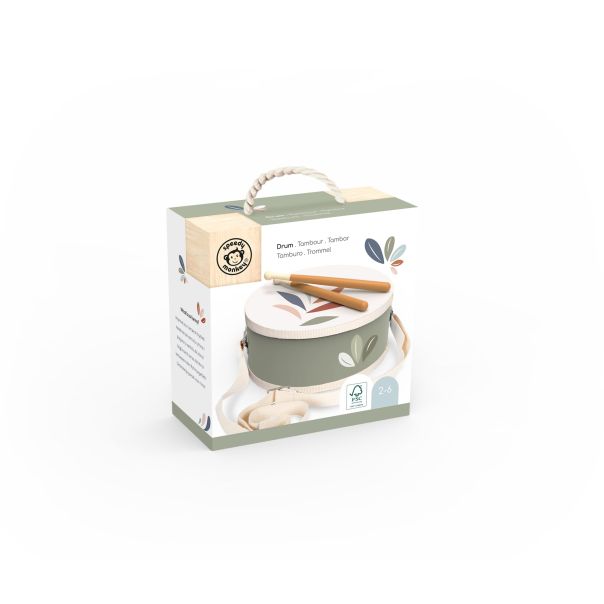 Ovaj ekološki muzički instrument nudi zabavan i privlačan način za razvoj ritma i motoričkih veština. Sa svojom glatkom završnom obradom i čvrstim dizajnom, idealan je za male ruke da istražuju i stvaraju sopstvene ritmove. Izdržljiv i lepo napravljen, ovaj drveni bubanj nije samo igračka, već odskočna daska ka doživotnoj ljubavi prema muzici. Ova igračka je napravljena od drveta održivog porekla iz šuma sa FSC® sertifikatom i premazana je netoksičnom bojom koja je bezbedna za decu. Bubanj je prečnika 18 cm