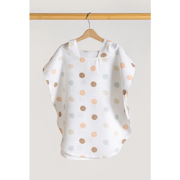 Dodajte dašak razigrane elegancije dečijem outfitu uz STEFAN pončo od muslina. Ovaj pončo je izrađen od 100% prirodnog pamuka, što ga čini savršenim izborom za osetljivu dečiju kožu. Muslin je poznat po svojoj mekoći i prozračnosti, pružajući udobnost i lakoću nošenja tokom celog dana.