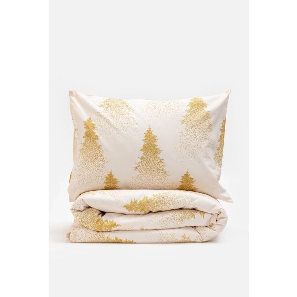 Unesite duh Nove godine u svoj dom sa ekskluzivnim Novogodišnjim setom posteljine STEFAN. Ovaj set, sa svojim elegantnim dezenom, ukrašen zlatnim motivima jelki na beloj podlozi, transformiše vašu spavaću sobu u oazu radosti, svetlosti i svečanog mira. Savršen je za one koji žele da dodaju dašak praznične čarolije u svoj prostor.