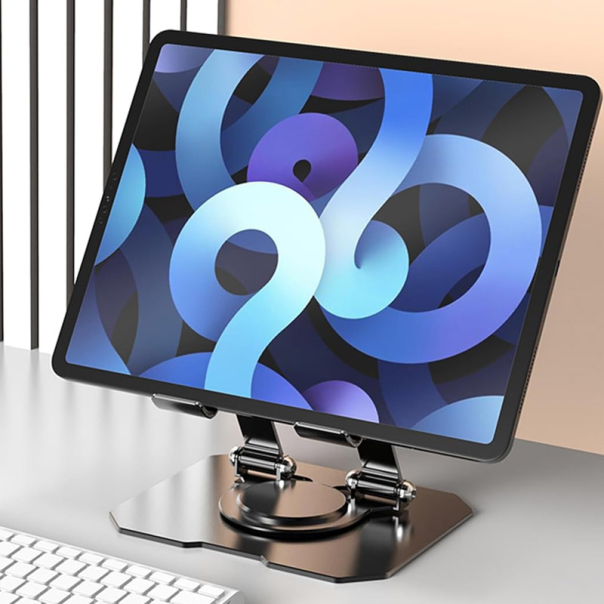 Metalni podesivi stalak za tablet (4"–16") Potpuno podesiv dizajn Stalak dolazi sa dve rotirajuće ruke koje omogućavaju 360° horizontalnu rotaciju i 180° vertikalno naginjanje . Možete slobodno podešavati visinu i ugao za maksimalnu udobnost. Idealno za rad, gledanje sadržaja, video pozive ili čitanje kuhinjskih recepata. Napomena: pre nego što postavite uređaj, prvo prilagodite položaj samog stalka! Kompaktan i prenosiv Zahvaljujući sklopivom dizajnu , lako se preklapa i nosi – savršen za putovanja. Metalna konstrukcija iz jednog dela omogućava brzo postavljanje i upotrebu bilo kada i bilo gde. Zaštita protiv klizanja Površine koje dolaze u kontakt sa uređajem su prekrivene protivkliznom silikonskom gumom , koja sprečava klizanje i grebanje. Uređaj stoji čvrsto, čak i dok se puni. Visoka stabilnost i izdržljivost Stalak je izrađen od kvalitetnog metala pomoću CNC ultra-precizne tehnologije , što ga čini teškim, čvrstim i otpornim na prevrtanje . Trajan i pouzdan, idealan za svakodnevnu upotrebu. Široka kompatibilnost i višestruka primena Pogodan za sve uređaje od 4 do 16 inča – uključujući mobilne telefone, tablete i e-čitače. Idealan za kuhinju, kancelariju, školu ili dnevnu sobu. Savršen za čitanje recepata, video pozive, gledanje filmova ili rad.