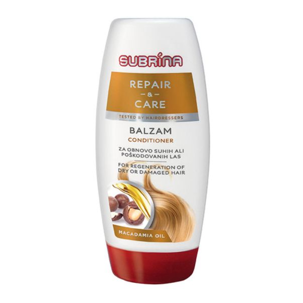 Uz pomoć odabranih sastojaka, Subrina balzam za kosu Repair&Care sveobuhvatno neguje vašu kosu i vraća joj mekoću i sjaj. Njegova nežna formula za negu sadrži keratin koji obnavlja i jača oštećenu strukturu kose i ulje makadamije koje vašoj kosi vraća gipkost, glatkoću i izgubljenu vlagu.