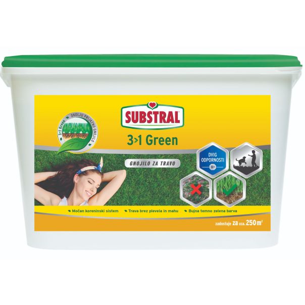 Redovnom primenom, SUBSTRAL 3u1 Green sprečava stvaranje mahovine i korova, dok jača i zadebljava travnjak. Nakon poslednjeg košenja, sačekajte najmanje 4 dana pre primene đubriva.