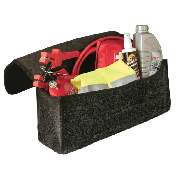 Torba za organizovanje stvari u gepeku napravljena je od veoma postojanog tekstilnog materijala i sadrži velcro čičak trake namenjene da održe Položaj torbe u prtljažniku na jednom mestu. Torba će pružiti zaštitu od eventualnih curenja tečnih sredstava koji se nalaze u njoj. Pogodna je za odlaganje alata, tečnih sredstava, sredstava za čišćenje i ostalih koje se mogu često pronaći u prtljažniku. Karakteriše se velikom zapreminom i sadrži tri dodatna spoljašnja džepa. Takođe, sadrži i drške namenjene da olakšaju prenošenje. Dimenzije torbe: 50 x 25 cm