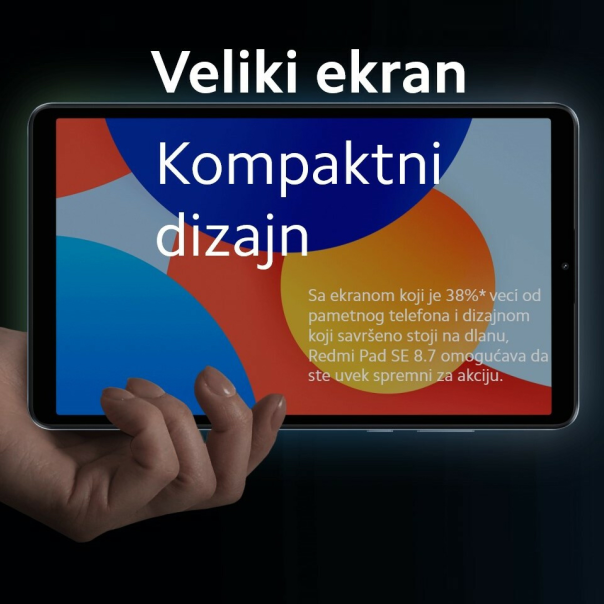 Upoznaj Xiaomi Redmi Pad SE 8.7" – tablet koji spaja moderan dizajn, sjajne performanse i pristupačnu cenu, idealan za svakodnevnu upotrebu! Bilo da gledaš serije, radiš ili se igraš, ovaj plavi lepotan će ti pružiti sve što ti treba na dlanu.