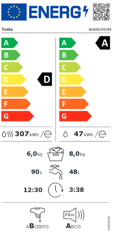 Opremljena sa 1400 obrtaja centrifuge u minuti, TESLA WW86492M omogućava brzo i efikasno pranje i sušenje veša. Iako nema inverter motor, njena energetska efikasnost je ocenjena razredom D prema standardima od 1. marta 2021. godine.