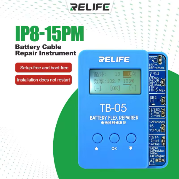 TB-05 tester omogućava čitanje podataka, popravku zdravlja i efikasnosti baterije bez potrebe za složenim podešavanjima ili zamenom baterije. Idealan za profesionalne servisere koji žele da vrate bateriju na 100% efikasnosti i resetuju broj ciklusa punjenja. Ključne karakteristike: Podrška za iPhone 8-15 Pro Max – Kompatibilan sa svim modelima od iPhone 8 do najnovijih iPhone 15 Pro Max uređaja. Brza i jednostavna instalacija – Nije potrebno ponovno pokretanje uređaja niti bilo kakvo dodatno podešavanje. Nakon povezivanja podešavanja se odmah aktiviraju . Resetovanje broja ciklusa i efikasnosti – Baterija se postavlja na 0 ciklusa i 100% efikasnosti , čime se poboljšava njen rad nakon zamene. Bezbedan i stabilan rad – Algoritam za kapacitet baterije osigurava maksimalne performanse , a anti-limit zaštita sprečava kratke spojeve i oštećenja na uređaju. Jednostavno ažuriranje podataka – Nakon instalacije, dovoljno je priključiti punjač i restartovati telefon kako bi se podaci o bateriji sinhronizovali. Otporan i dugotrajan kabl – Fleksibilan, ojačan kabl sa zaštitom od savijanja osigurava dugotrajnu upotrebu bez rizika od oštećenja. Nizak utrošak energije – Ne utiče na trajanje baterije, ne uzrokuje isključivanje uređaja niti povećava potrošnju u stanju mirovanja. Podrška za više jezika – Mogućnost brzog prebacivanja između kineskog i engleskog jezika.