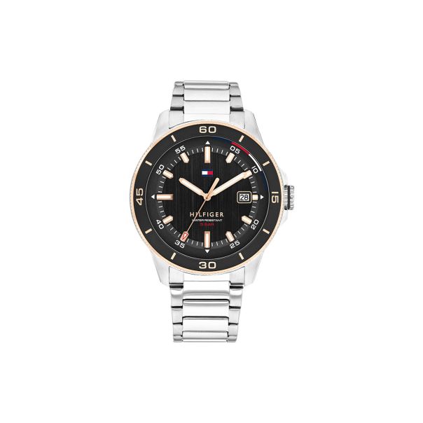 Boja brojčanika: Crna Boja narukvice: Srebrna Materijal kućišta: Nerđajući čelik Materijal narukvice: Nerđajući čelik Oblik kućišta: Okruglo Prečnik kućišta: 43 mm Vodootpornost: 5 ATM Mehanizam: Kvarcni