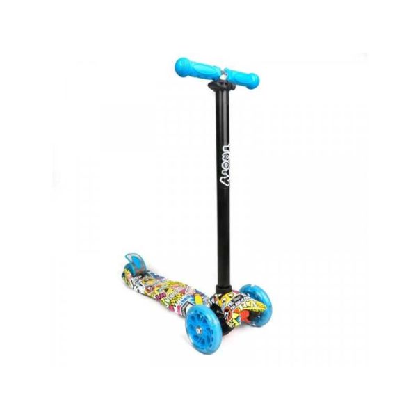 Kvalitetan trotinet za decu namenjen sigurnom dečjem korišćenju. Najveća prednost trotineta je u tome što je potpuno siguran za dete, izuzetno je lagan za korišćenje i praktičan za upotrebu. Točkovi izrađeni od specijalne vrste čvrste gume koja se ne haba tokom vožnje. Materijal kućišta: aluminijumska šipka, gumirani rukohvati koji sprečavaju isklizavanje iz dečje ruke. Točkovi svetle prilikom vožnje. Ultra moderan dizajn ovog trotineta privući će sve poglede prolaznika na ulici, parku, igralištu... Maksimalna izdržljivost: 60 kg. Prednja dva točka dim. 12 cm, zadnja dva točka 8 cm. Dim.pakovanja: 61x45x39 cm. Neka trotinet postane novo prevozno sredstvo deteta!